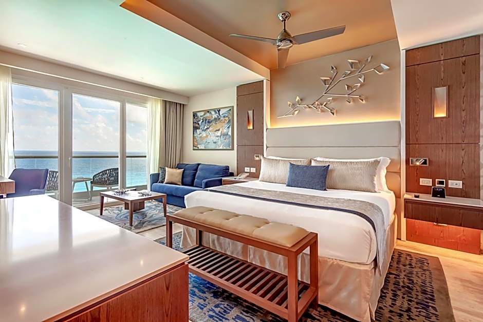But the fun doesn’t stop there! The Royalton CHIC Cancun boasts stunning beach umbrellas and loungers for basking under the Mexican sun. Embrace peace of mind with free Wi-Fi, 24-hour front desk service, and ample parking. With a garden and sun deck to unwind, plus sauna and massage treatments available for a little extra pampering, this adults-only haven is designed for relaxation and romance. Whether you’re planning a getaway with friends or a romantic escape, this resort is sure to exceed your expectations!